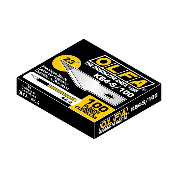 100 precision blades for professional art knife in a plastic case. Packed in a plastic bag.