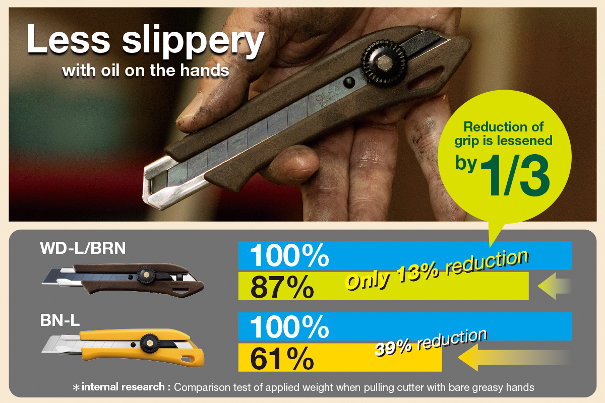 Woody Cutter maintains grip even with greasy or sweaty hands. A good choice for use at mechanical shops and any environmentally conscious workplaces.