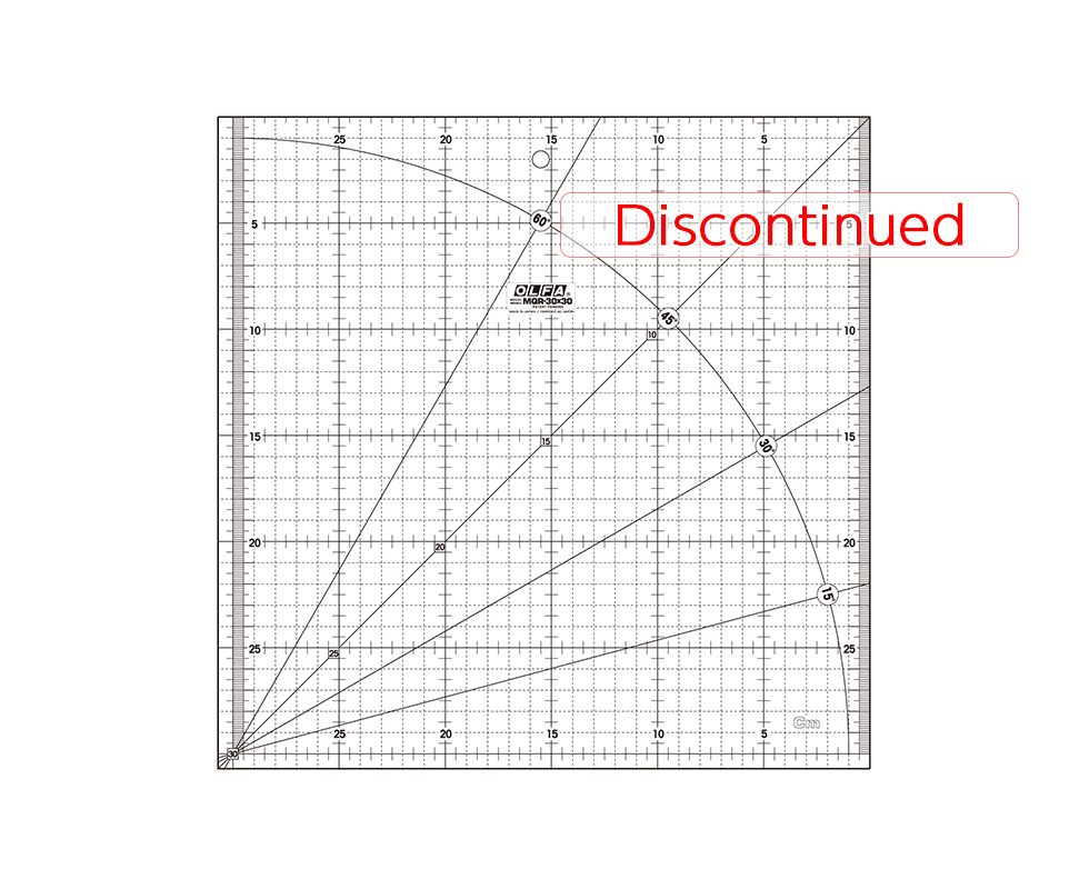 OLFA's Quilt Ruler has a frosted acrylic surface with black numbers for clarity on light and dark color fabrics. The ruler allows the user to make precise measurements and cutting angles during sewing and quilting applications. 30cm x 30cm, metric grid model. Accommodates both right- and left-handed users.
