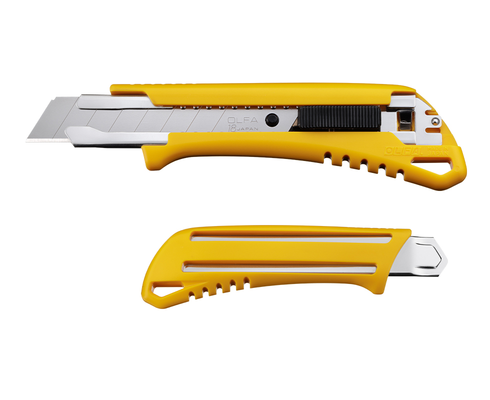 Fluorine coated heavy-duty blade “Speed Blade” cuts 2 times as fast through cardboard, when compared to the LBB.