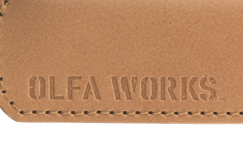 レザーケース表面の後部には、「OLFA WORKS」ブランドロゴの焼き印が入っており、より特別感があります。