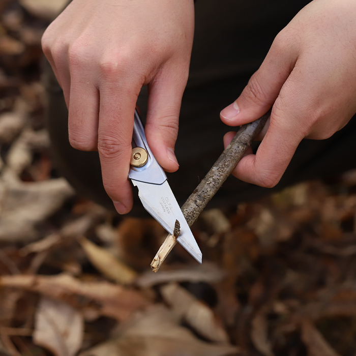 刃・本体ともにステンレス製でサビにくいため、アウトドアにも使えます。1.2ミリ厚の刃は、ハンドワークやアウトドアでタフに活躍します。