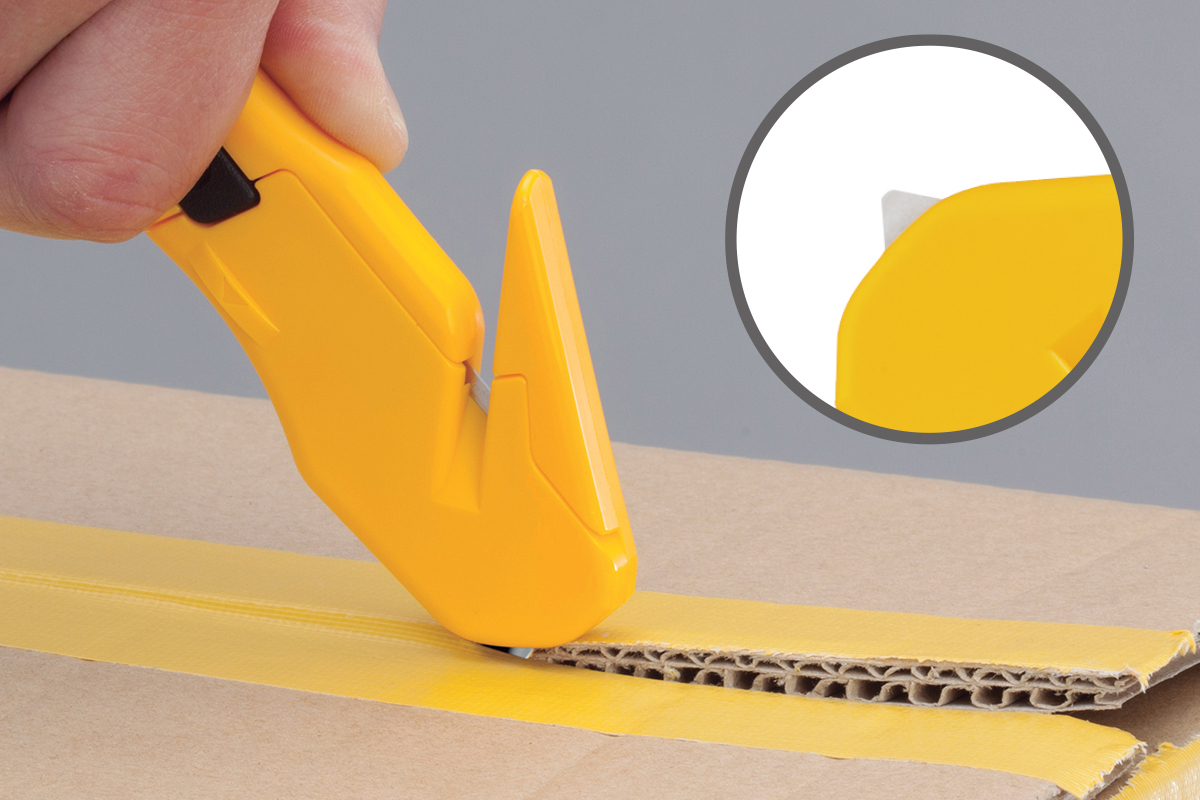 くちばし状のガイドをさしこみ「すくい切り」することで、荷物を傷つけることなくストレッチフィルムやPPバンド、緩衝材などを切断できます。